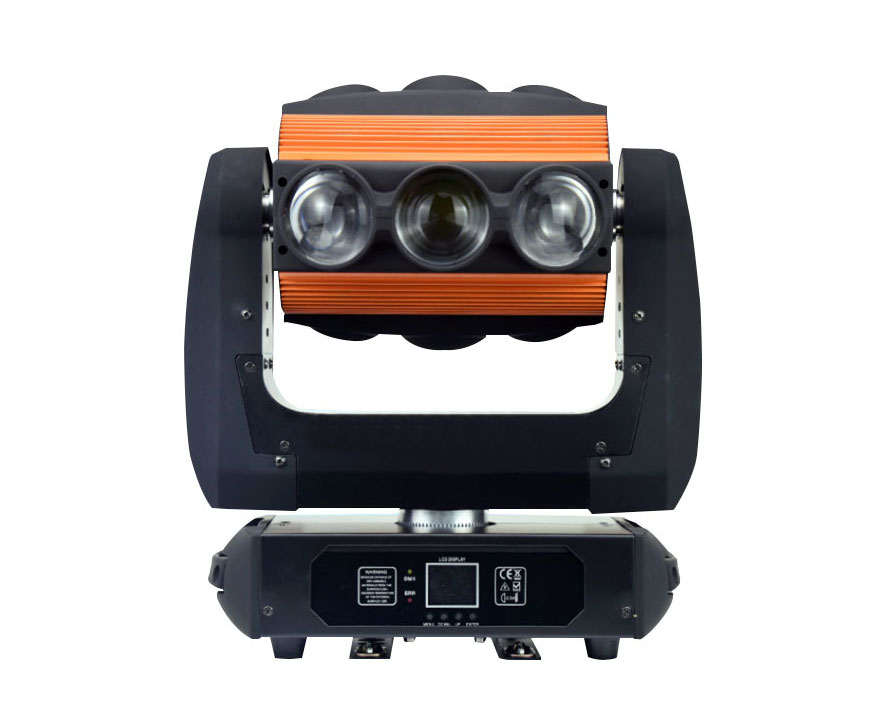 技術參數: 輸入電壓:AC110V-240V 用電功率:160W LED光源:9*10W進口科瑞四合一燈珠 DMX通道:模式一:10;模式二:41 控制通道:10CH/41CH 通道模式:DMX512/聲控/自走/主從 光束顏色:紅綠藍白 (可定做10W單紅 綠 藍 白) 旋轉角度:X軸:540度,Y軸:無極旋轉 X掃描540度加讀數盤糾錯功能 Y掃描無極旋轉加讀數盤糾錯功能 工作溫度:40℃到-10℃ 包裝尺寸:400*300*420mm 產品重量:9KG