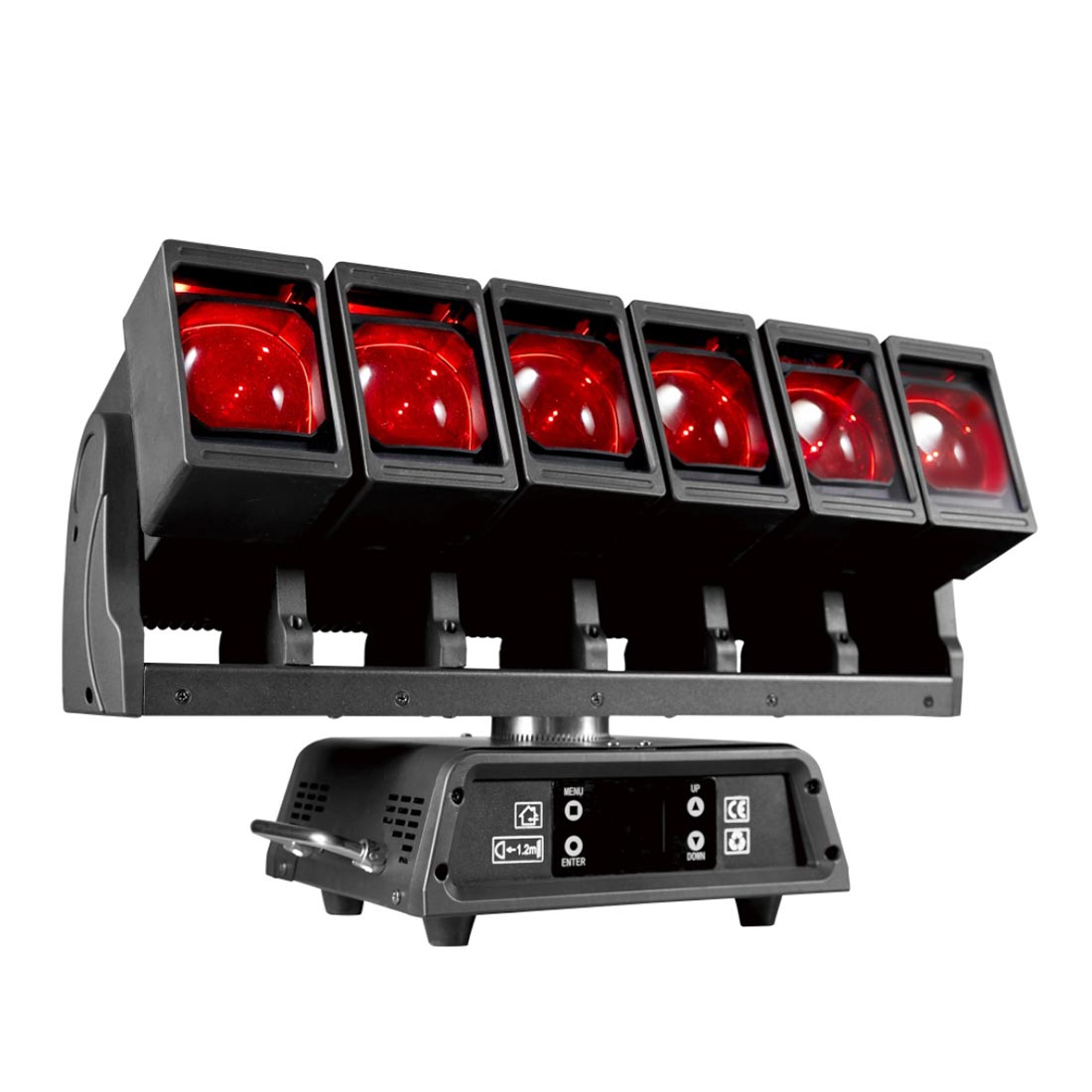 電壓: AC100~240V 50/60HZ 功率: 6*60W(360W) 燈珠: 6顆四合一60瓦LED燈珠 控制方式: DMX512、自走、主從、帶RDM功能。 通道: 23CH.28CH.62CH.92CH.94CH 調光: 32bit 0~100%線性調光 特點: 單顆搖擺+染色+光束 工作環境溫度: -30度~50度 頻閃頻率: 1~30HZ 外觀: 金屬、黑色 連接方式:DMX512輸入輸出 / 電源輸入輸出。 IP 等級: IP20 尺寸: 544.42*225.7*350.85 MM  重量: 15.5K。